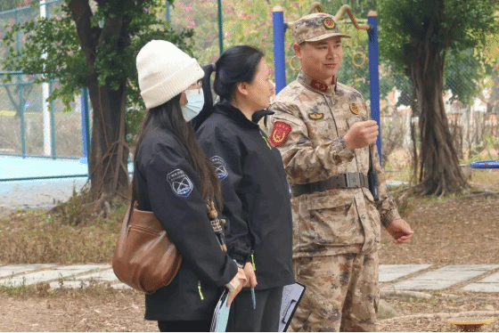 训练场边,总有让人安心的身影。工公司学工办主任唐玉婷老师亲临现场,细致询问同学们的训练进度与身体状况,用真切关怀为大家注入温度力量。2025级指导员更是全程坚守岗位,时而为学子们加油鼓劲,时而关注大家的精神状态,及时疏导训练中的疲惫与压力,用陪伴传递温暖与力量,成为少年们军训路上的“坚实后盾”。医务团队则提前备好常用药品的急救箱,时刻待命应对突发情况。正是这些身影让寒冷的训练场多了一份坚实的保障,让学子们能够毫无顾虑地投入训练。