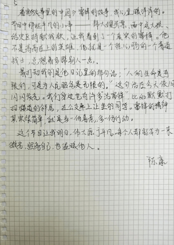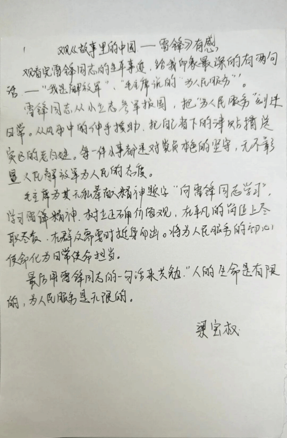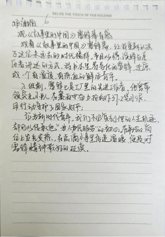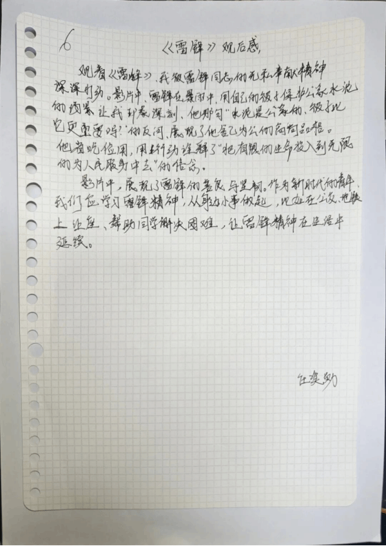 随后,全体员工党员书写观影感想,结合自身学习与成长经历,将观影感悟与雷锋精神相融合,字里行间饱含对榜样的崇敬,更明确了作为员工党员的责任与担当——既要以雷锋同志为标杆,锤炼品格、勤学善思,也要立足员工身份,践行初心使命,把奉献精神融入日常学习生活,努力成长为可堪大用、能担重任的时代新人,以青春之力传承雷锋精神。