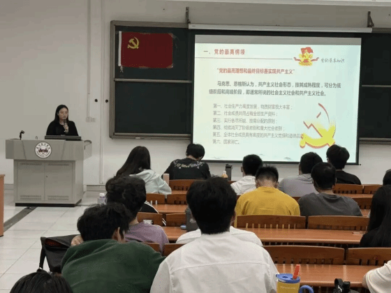 然后,老师围绕党的最高理想和最终目标是实现共产主义这一核心主题展开授课。从生产力发展、社会形态变革等多个维度,系统阐释共产主义的科学内涵与实现路径,帮助学员们深刻理解党的纲领,筑牢对共产主义远大理想的认知根基。为帮助同学们更好地理解,王老师组织同学们观看红色主题影片,通过珍贵的历史影像,带领学员们回望党的奋斗历程,感受革命先辈为理想信念不懈奋斗的精神力量。