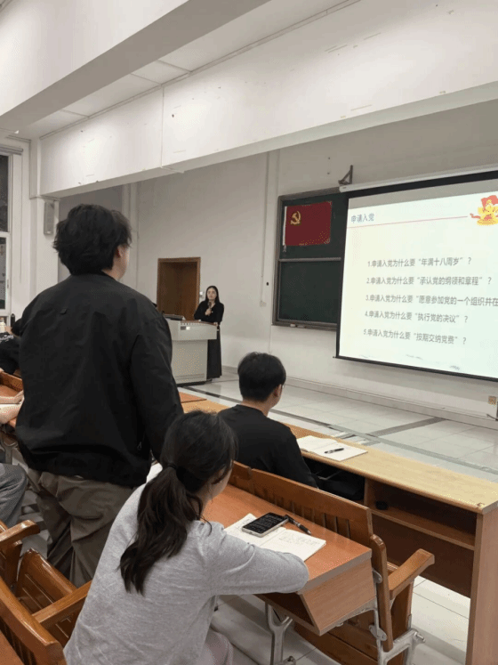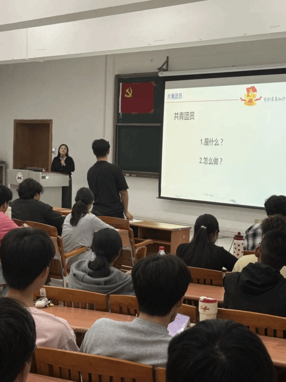 首先,王妍老师以共青团员与党员的紧密联系为切入点,为青年学子们带来了一场深刻的思想启蒙。再围绕 “共青团员是什么”,“共青团员与共产党员的关系是什么” 等核心问题展开讲解,引导大家思考 “如何从一名合格共青团员成长为一名共产党员”。王妍老师提出问题时,同学们主动起身,结合自身学习与实践经历分享感悟,分享自己的理解。