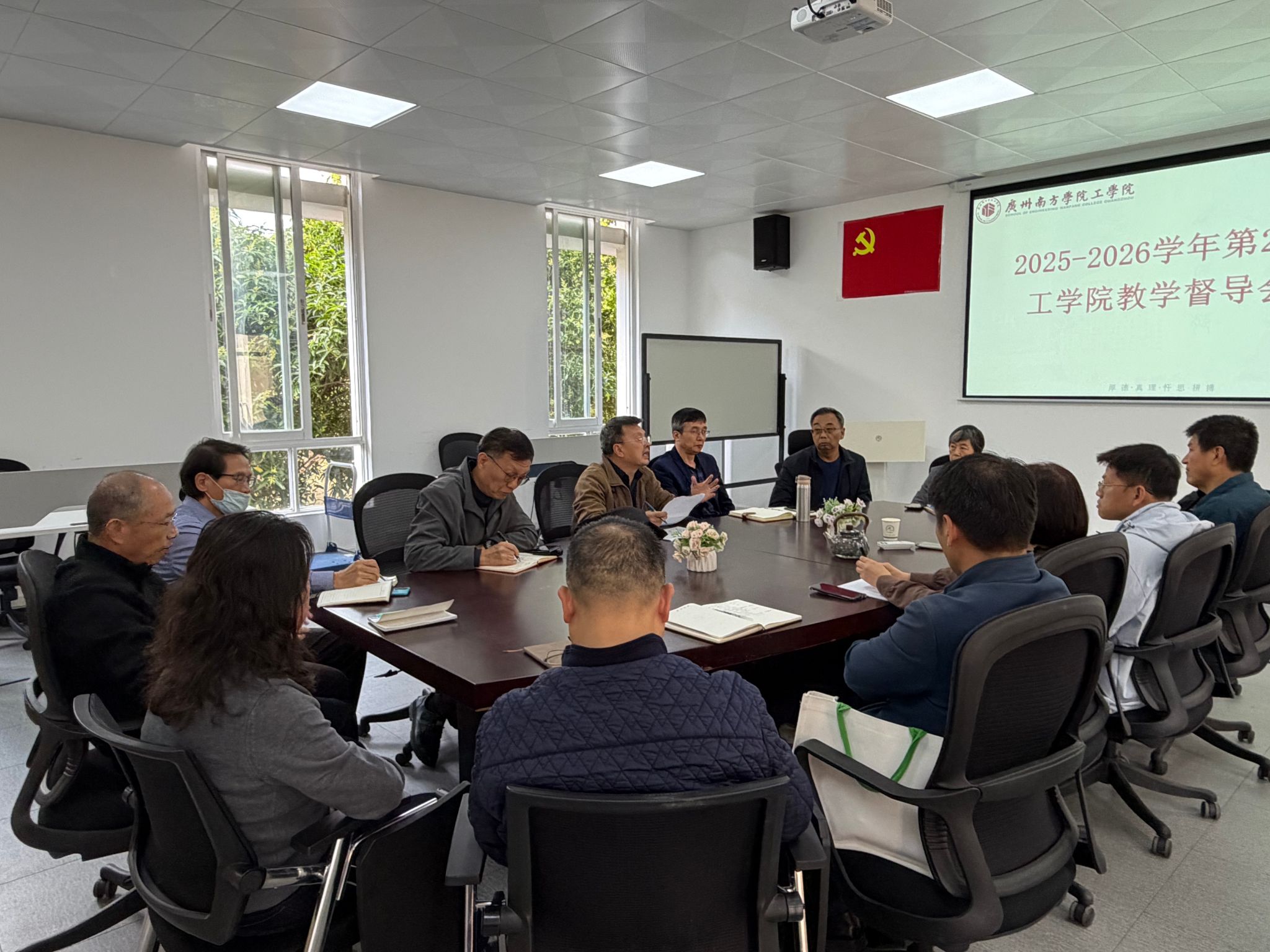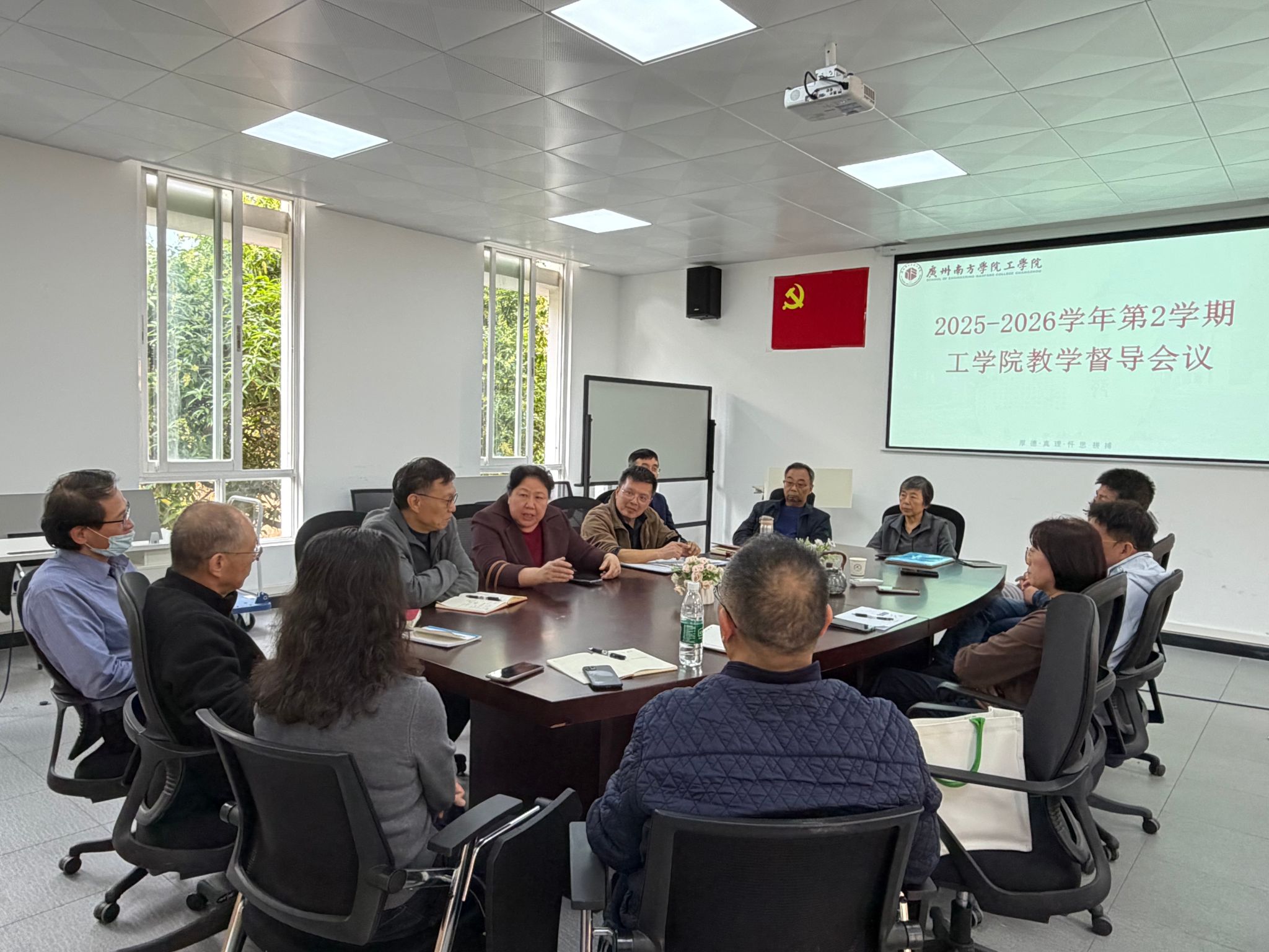 为全面落实公司教学质量监控工作要求,扎实推进新学期教学督导工作,切实提升课堂教学质量与教师教学能力,3月11日下午,工公司在2教201会议室召开2025-2026学年第二学期教学督导工作会议。公司教学督导组长王亚欣教授、副组长谢俊国教授,工公司常务副经理苑俊英教授及领导班子成员、全体教学督导参加会议。会议由工公司教学督导组组长谭劲教授主持。