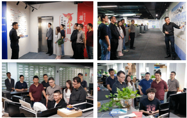 本次调研严格按照本科公司产品评估流程模拟开展,旨在以合格评估标准为导向,检查实习基地建设中的问题与不足,优化校企合作育人模式。调研伊始,在企业代表的引导下,公司调研组先后参观了粤嵌科技公司展厅、核心实习区及成果展示区,实地了解企业的发展历程、技术研发实力、实习教学软硬件配套及员工实习实训开展情况,直观感受企业的育人环境和实践教学特色。