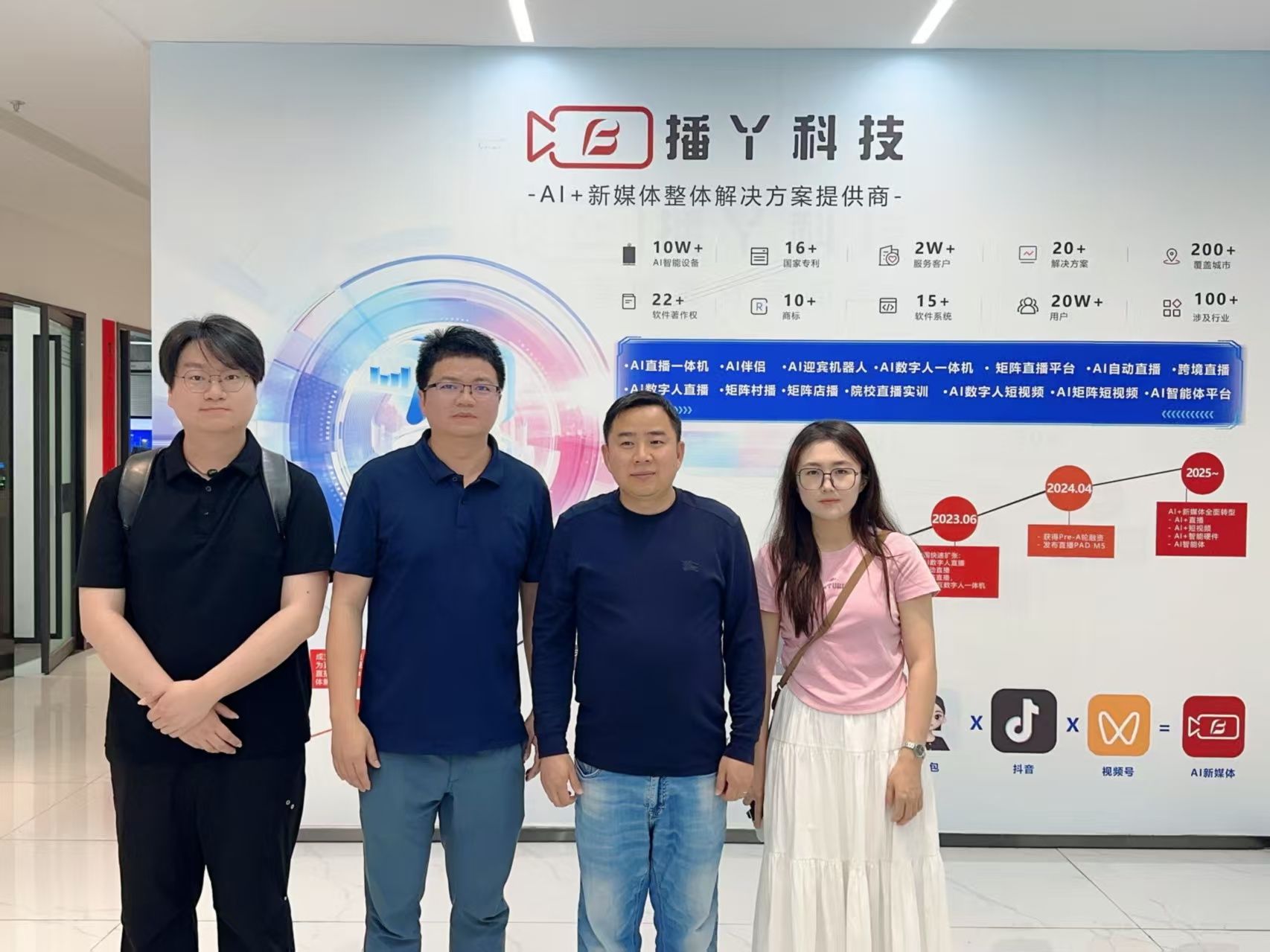 调研期间,工公司教师团队参观了播丫科技的产品展示中心与技术研发部门,详细了解企业发展历程与核心业务布局。作为智能直播机及SaaS平台服务提供商,播丫科技自2020年12月创立以来,专注于基于安卓生态的智能直播机及直播运营SaaS云平台研发,致力于为品牌商自播和实体商家店播,提供从线下到线上的全方位数字化营销解决方案。