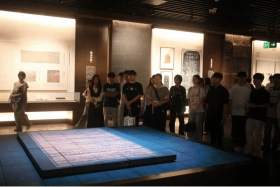 步入展厅,从甲骨刻辞到青铜铭文,从竹简帛书到活字印刷,从泛黄的侨批家书到数字时代的电子版本,每一件展品都是历史的见证,每一行文字都承载着民族的记忆。《文津阁四库全书》的复刻版本也在此一览。讲解员详细介绍了四库全书的编纂历程与文献价值,学员们在聆听与记录中,感受着中华典籍的博大精深,体会着中华文明“兼容并蓄、传承不息”的精神特质。沿着展区前行,讲解员逐一介绍造纸工艺的发展。看着展柜中不同材质的纸张,聆听着蔡伦改进造纸术的历史意义,学员们深刻体会到,每一项工艺的进步,都是先民们对实用与匠心的追求。