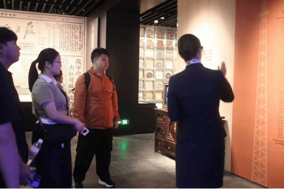 行至红色主题展区,浓郁的红色氛围扑面而来。讲解员结合历史背景,深情讲述着广东地区的革命历史与红色文献故事。泛黄的文献、生动的浮雕,再现了革命先辈们为民族独立、人民解放不懈奋斗的峥嵘岁月。从岭南革命火种的点燃,到改革开放的伟大探索,红色文脉始终是激励岭南儿女奋勇前行的精神旗帜。学员们驻足良久,认真聆听,不时交流感受,深刻领悟到“观版本千年文脉,悟初心百年征程”的深刻内涵——红色文献承载着党的初心使命,激励着我们这一代人赓续红色血脉、勇担时代重任。